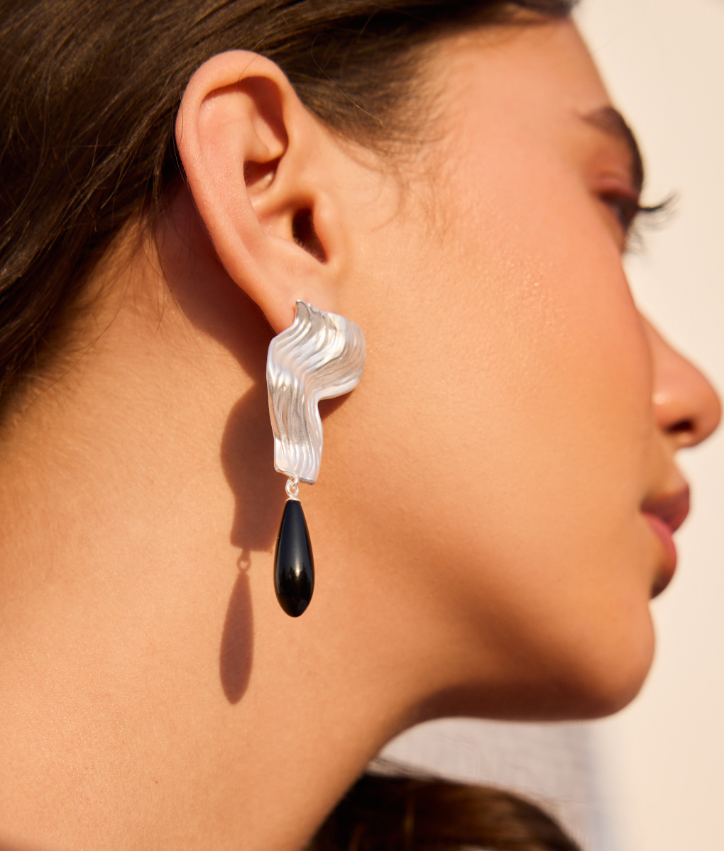 The Ola Earrings showcase timeless elegance with their silver-plated brass construction and natural agate stone accents. Each piece features the organic beauty of genuine agate, bringing earthy sophistication to your collection.