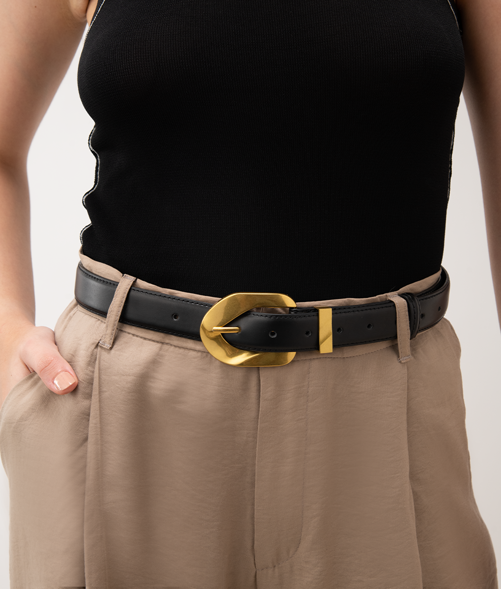 Indulge in sophistication and style with The Paris Belt. Crafted from genuine leather and adorned with an 18k gold plated buckle, this belt exudes luxury and refinement. Elevate any outfit with this exclusive, handcrafted piece that is sure to make a statement.