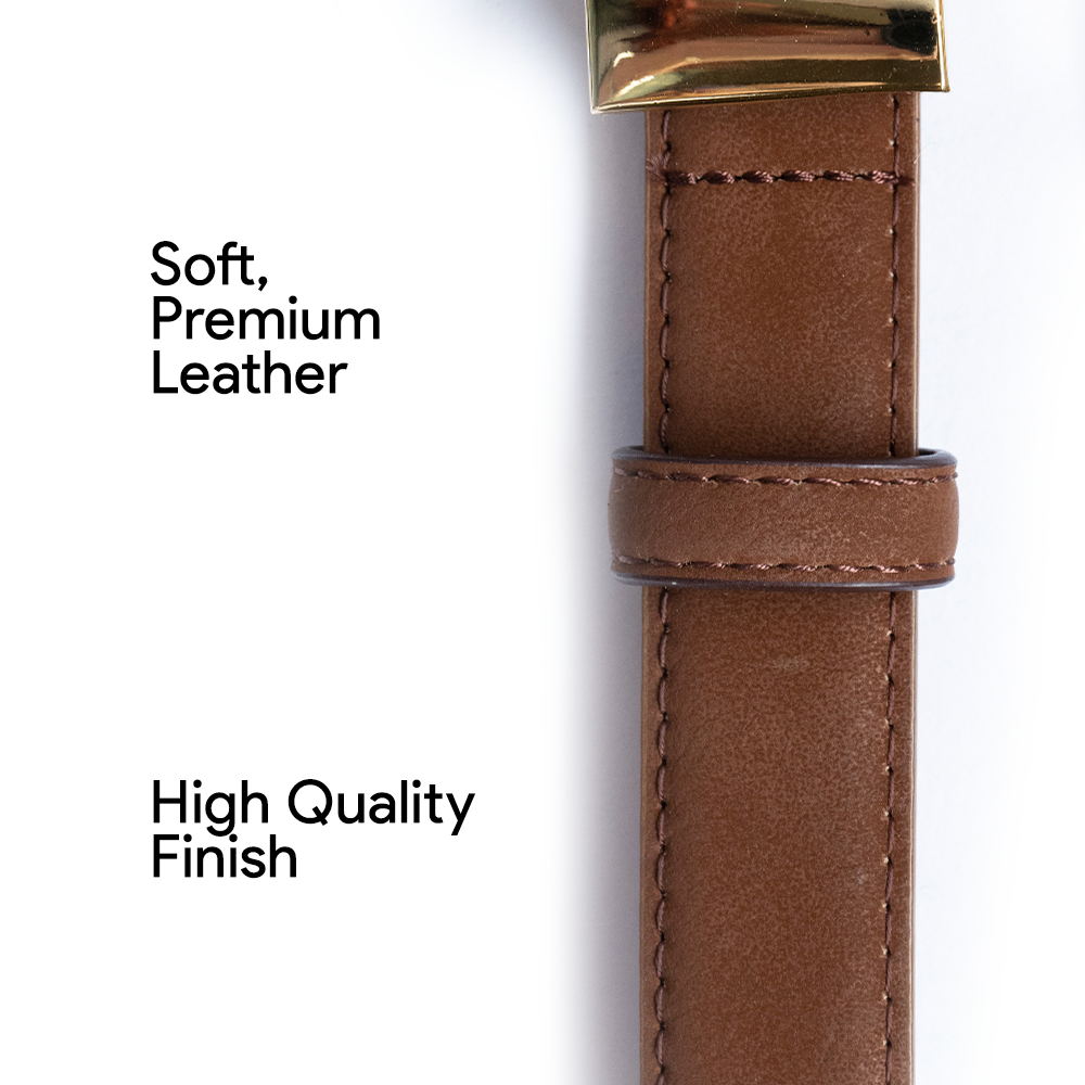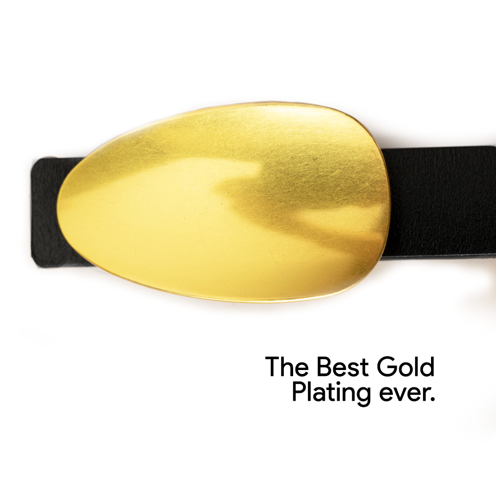 Elevate your style with The Tokyo Belt. Crafted with classic black leather and an oval gold plated buckle, this belt exudes sophistication and adds a touch of luxury to any outfit. Make a statement and upgrade your accessory game with The Tokyo Belt.