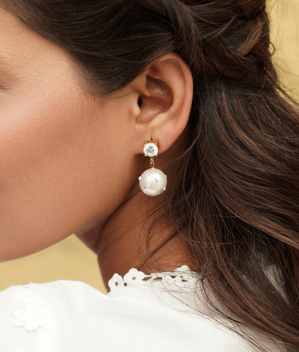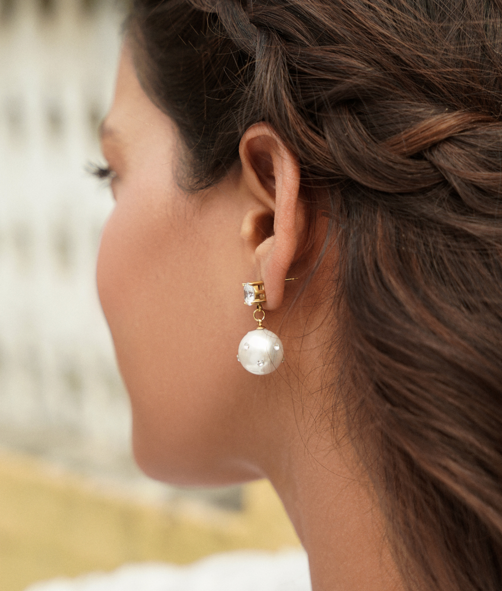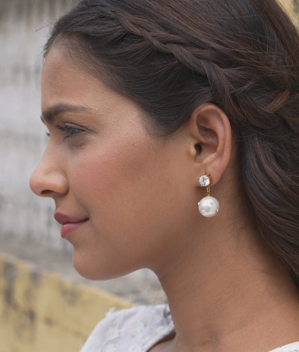 Timeless elegance meets modern sparkle with these exquisite pearl drop earrings. Lustrous pearls are paired with brilliant cubic zirconia crystals that catch light beautifully, creating a sophisticated shimmer with every movement.