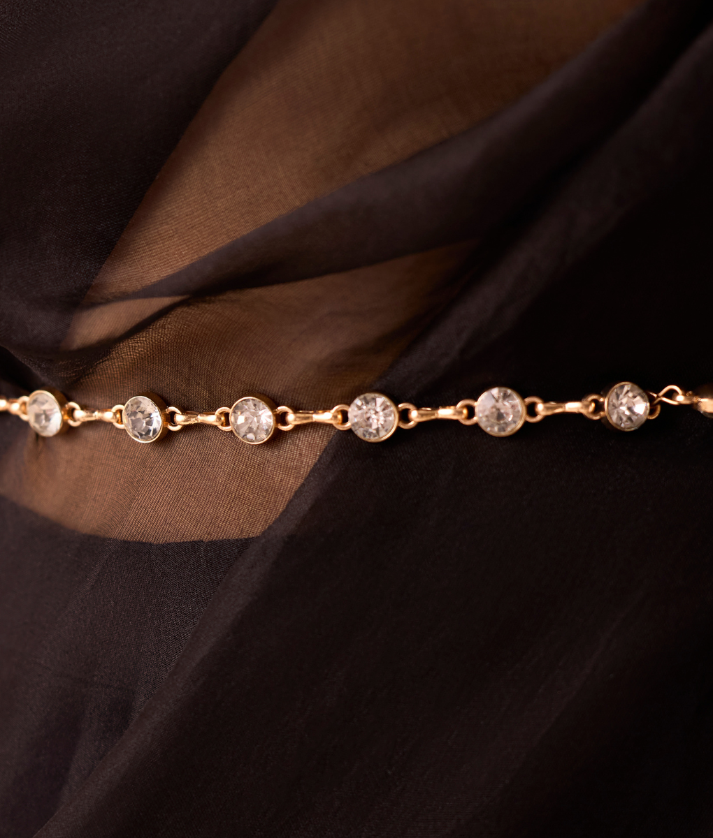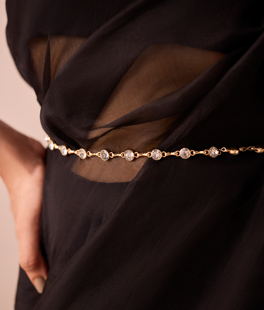 The Alaara Belt combines the enduring strength of gold-plated stainless steel with the refined sparkle of cubic zirconia crystals. Designed to add a touch of sophistication, this belt enhances any outfit with its elegant shine and lasting quality.