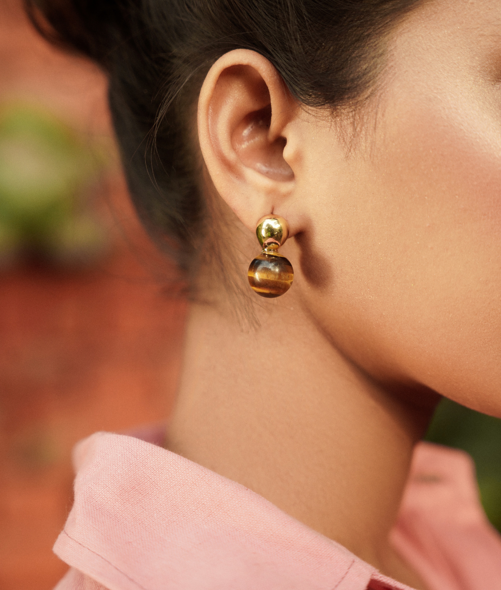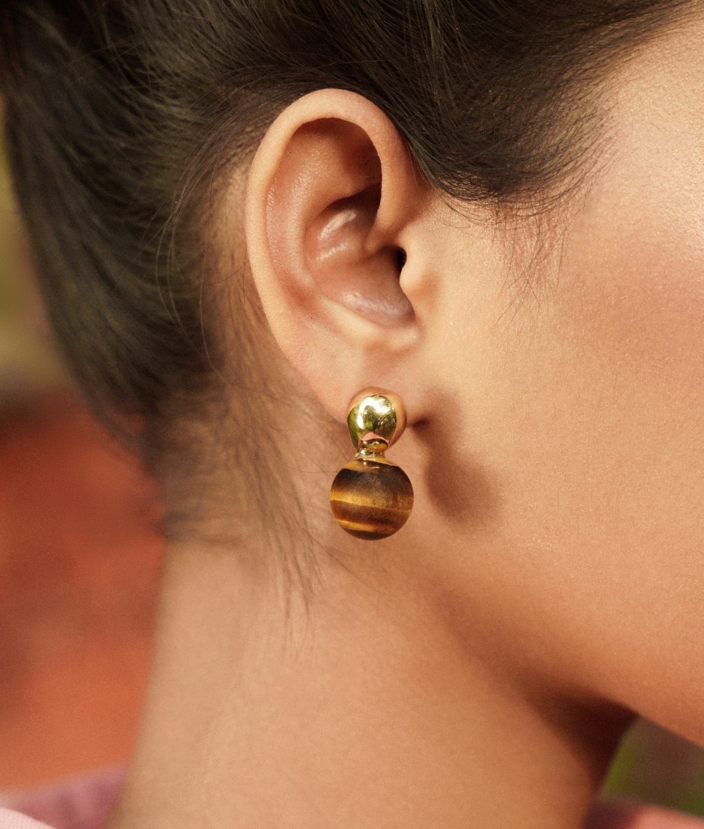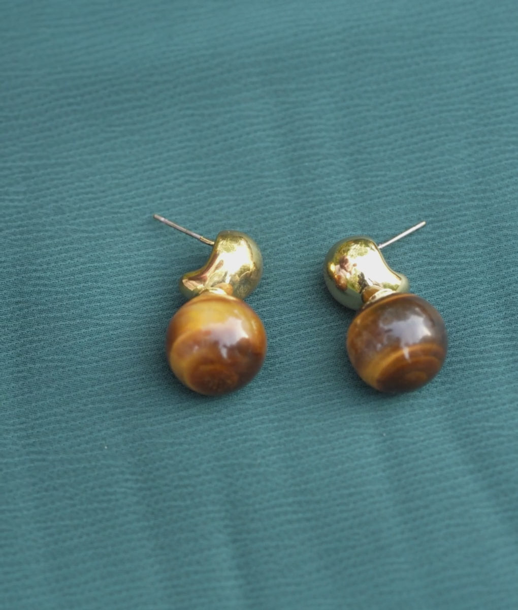 Crafted from premium 18k gold-plated stainless steel that catches the light beautifully. Each earring features a natural tiger eye stone, showcasing warm amber and golden hues that complement all skin tones. The rich, earthy tones of tiger eye bring a grounding energy while the lustrous gold plating adds a touch of luxury.