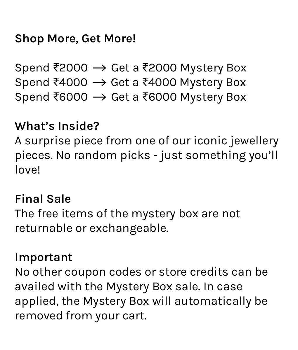 In case of any discolouration in jewellery, we will accommodate an exchange for up to 6 months from the date of purchase.