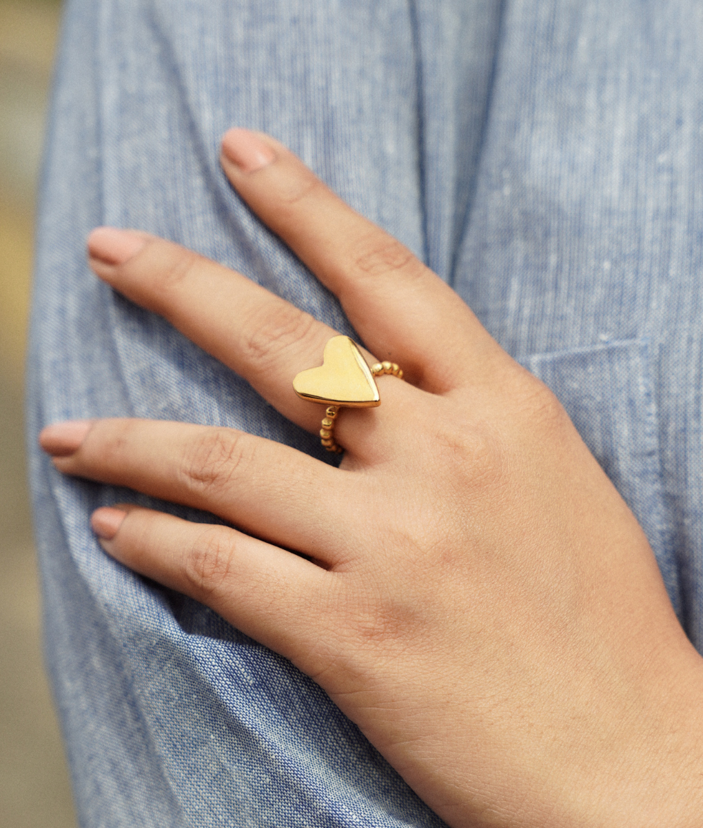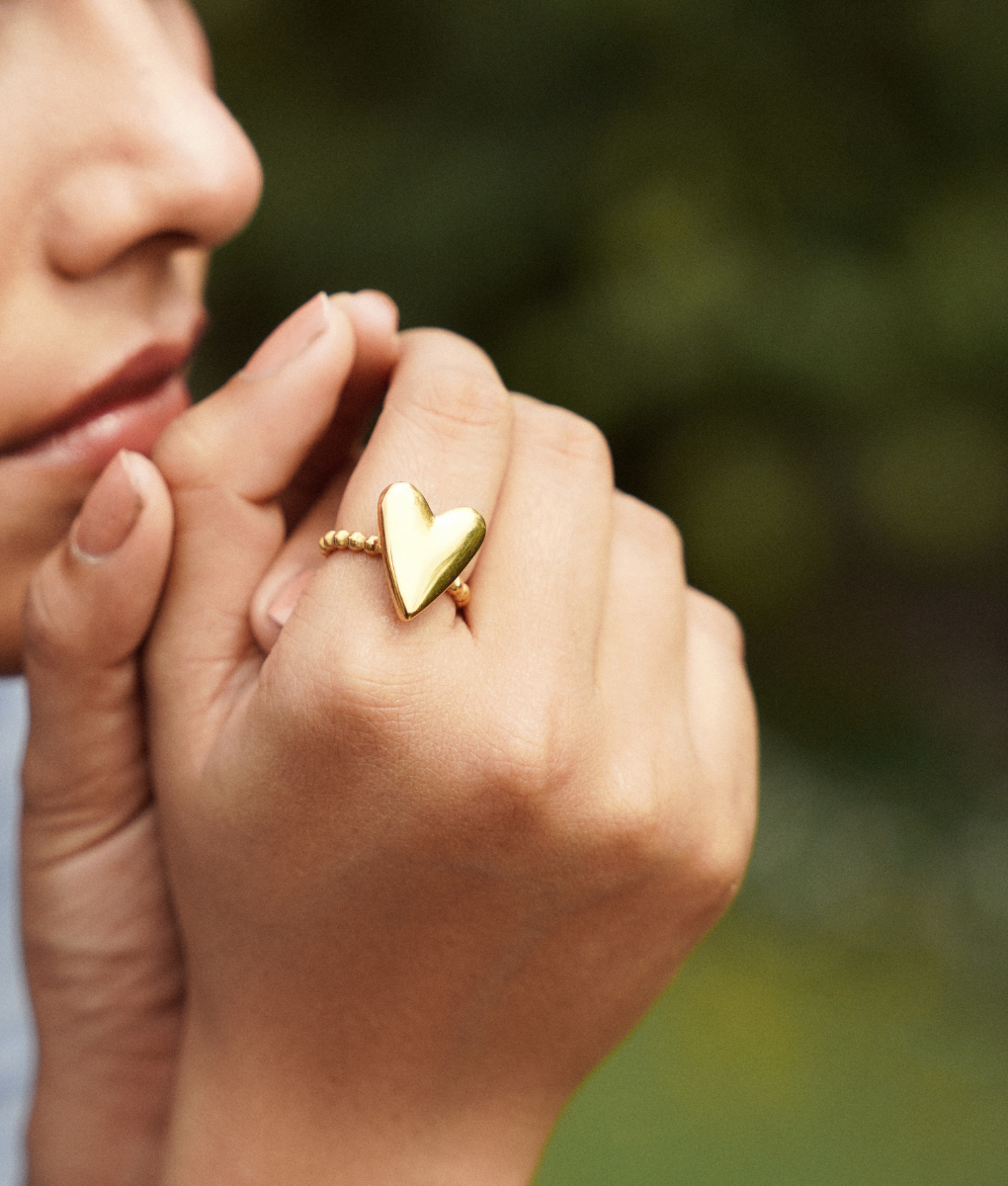 This timeless and elegant rings combines romantic design with everyday durability. The lustrous gold finish adds a touch of luxury while the sturdy stainless steel base ensures long-lasting wear. Perfect for gifting or treating yourself to a symbol of love and elegance.